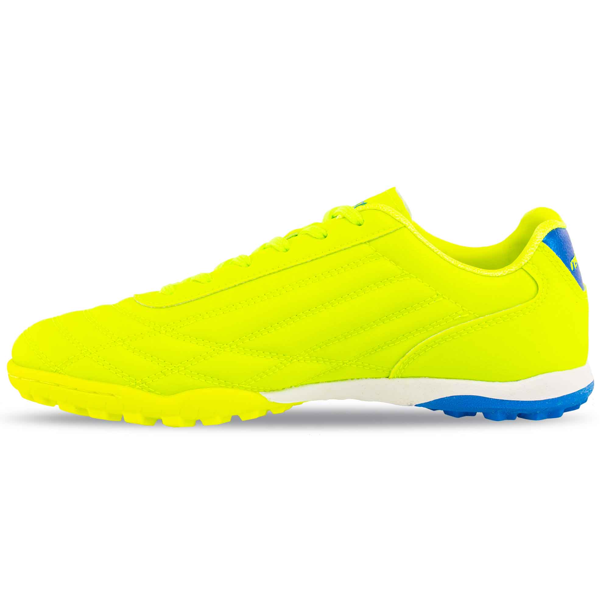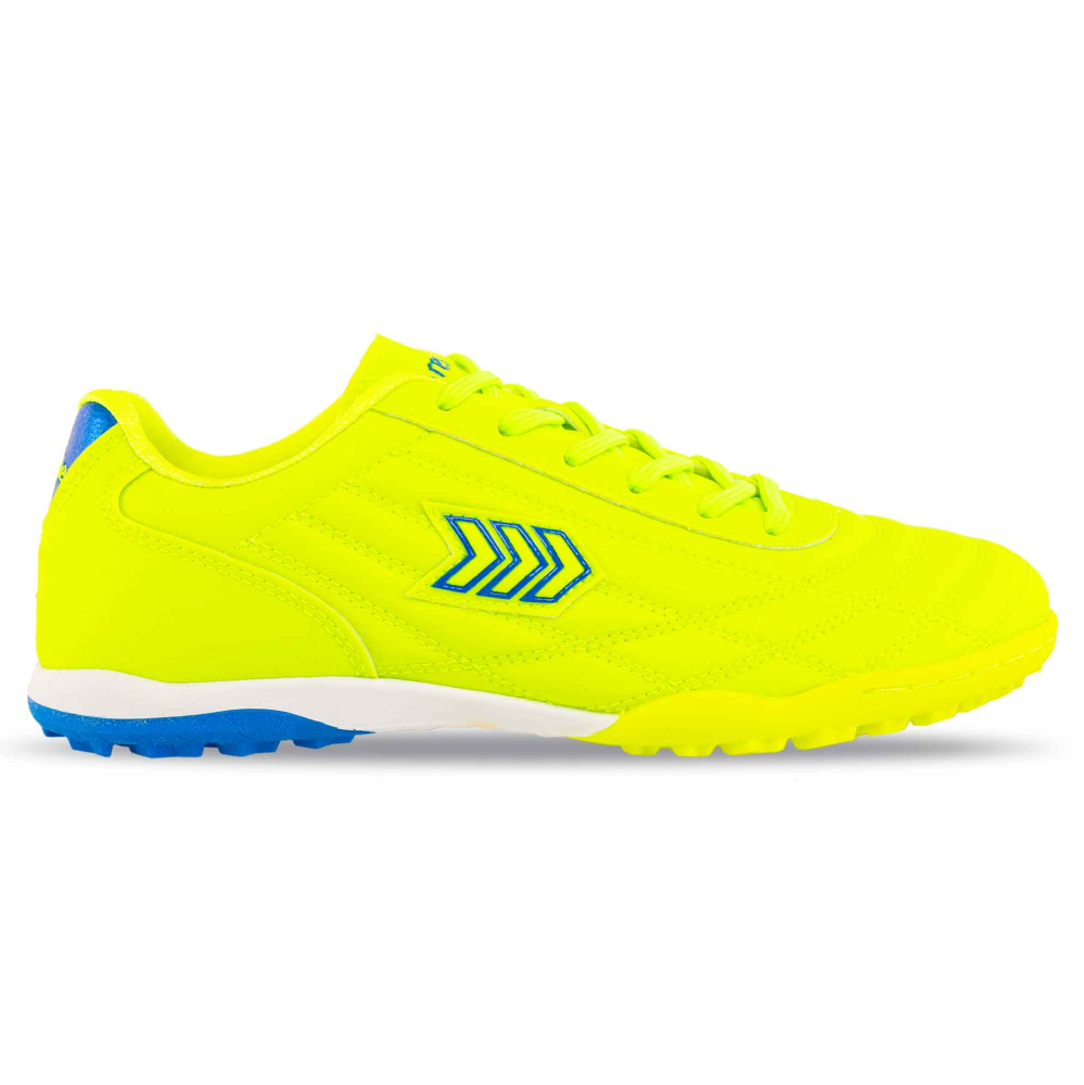 Футбольні сороконіжки RESTIME DWO24133-1 LIME_ROYAL мають патріотичний дизайн. Взуття такого яскравого забарвлення можна легко поєднувати з різними варіантами клубної форми. Сороконіжки представлені декількома варіантами розмірів, підійдуть для підлітків. Взуття виготовлене з довговічних і зносостійких матеріалів, легко адаптується до анатомічних особливостей стопи і забезпечує комфорт протягом усього тренування. Підошва забезпечує оптимальну стійкість і зчеплення з покриттям поля за рахунок малюнка протектора. Невеликі гумові шипи формують особливий малюнок, який сприяє розворотам в русі і на місці, дозволяє виконувати прискорення і гальмування. Верх взуття сприяє відмінному контролю м'яча і максимальному комфорту.
