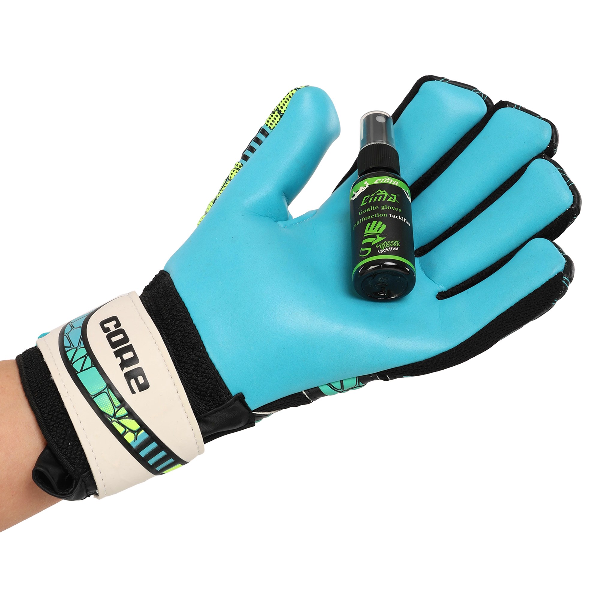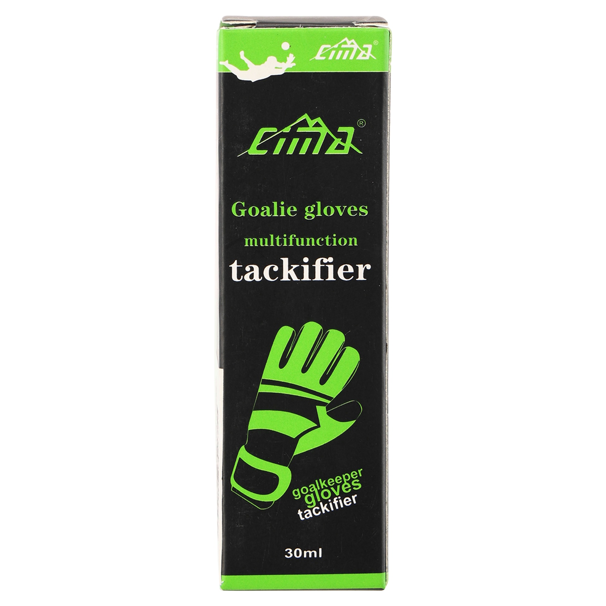 CIMA FB-5874 - це спеціальний спрей, який призначений для поліпшення зчеплення рукавичок з м'ячем. Такий спрей може використовуватися, якщо латексна поверхня рукавичок вже зносилася або на вулиці дощова погода. Його спеціальна формула відновлює і підсилює зчеплення рукавички за рахунок формування липкого шару на її поверхні. У складі спрею міститься для цього спеціальна полімерна речовина, а також кілька добавок і гліцерин. Об'єм флакона становить 30 мл, що дозволяє використовувати склад для обробки рукавичок кілька разів. У флаконі є спеціальний розпилювач, який дозволяє рівномірно нанести засіб на поверхню рукавички.