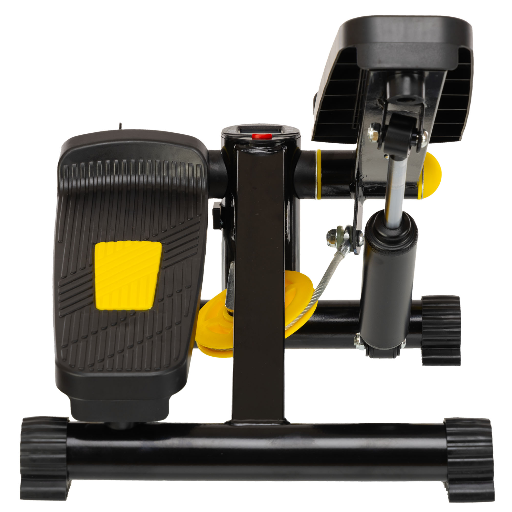 Багатофункціональний кардіотренажер Record FI-4781 MINI STEPER поєднує в собі функції класичного міністеппера і гумових еспандерів, дозволяючи виконувати комплексні тренування м'язів всього тіла. Він обладнаний вбудованим комп'ютером і невеликим дисплеєм, що відображає кількість кроків, час тренування та витрати калорій.