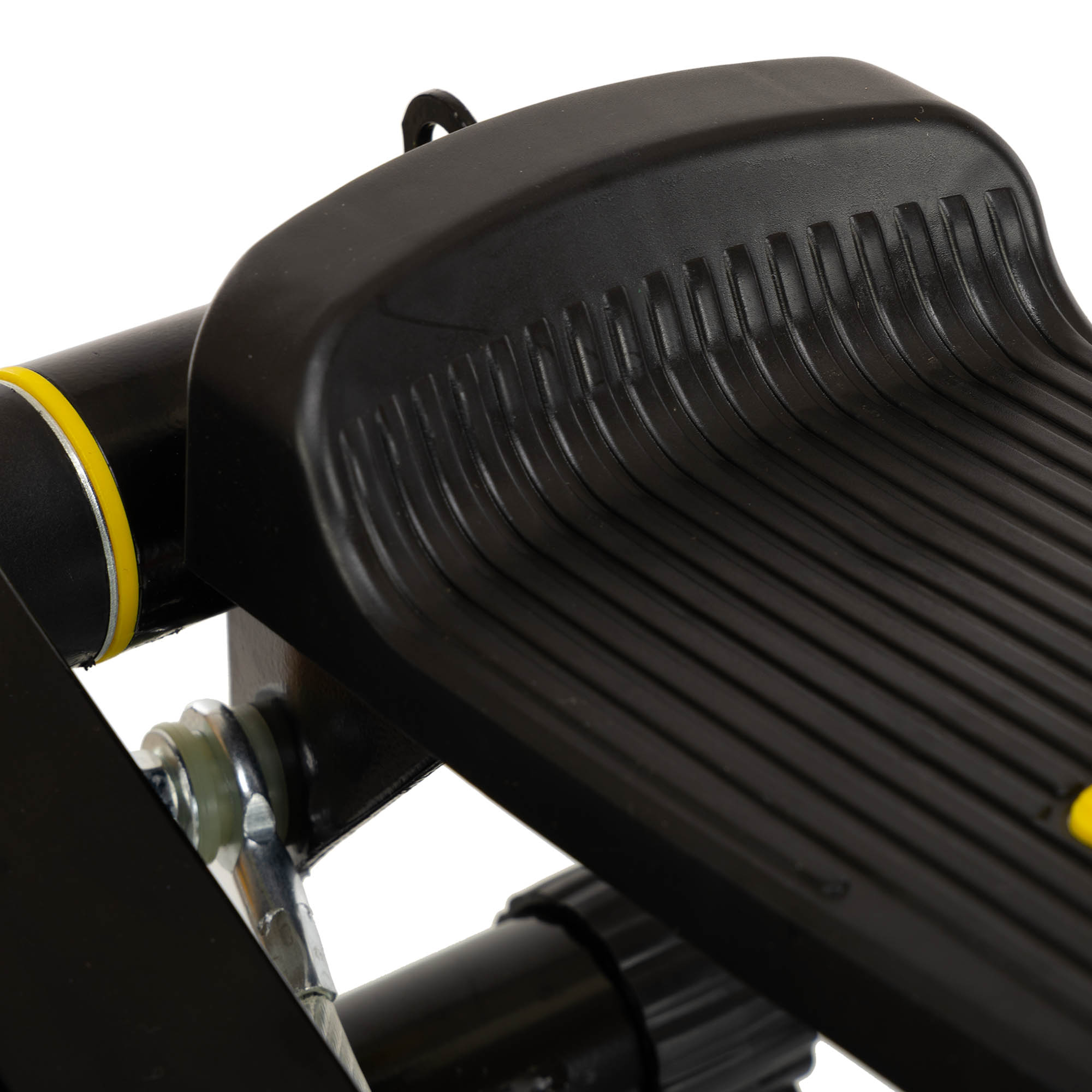 Степпер з еспандерами дозволяє одночасно крокувати й тягнути еспандери, що перетворює вправу в комплексне навантаження на все тіло. Він сприяє активному спалюванню калорій, зміцнює серцево-судинну систему, дозволяє прокачати м'язи всього тіла: литкові, передні та задні м'язи стегна, сідничні, м'язи спини, грудей, рук і плечового пояса.
