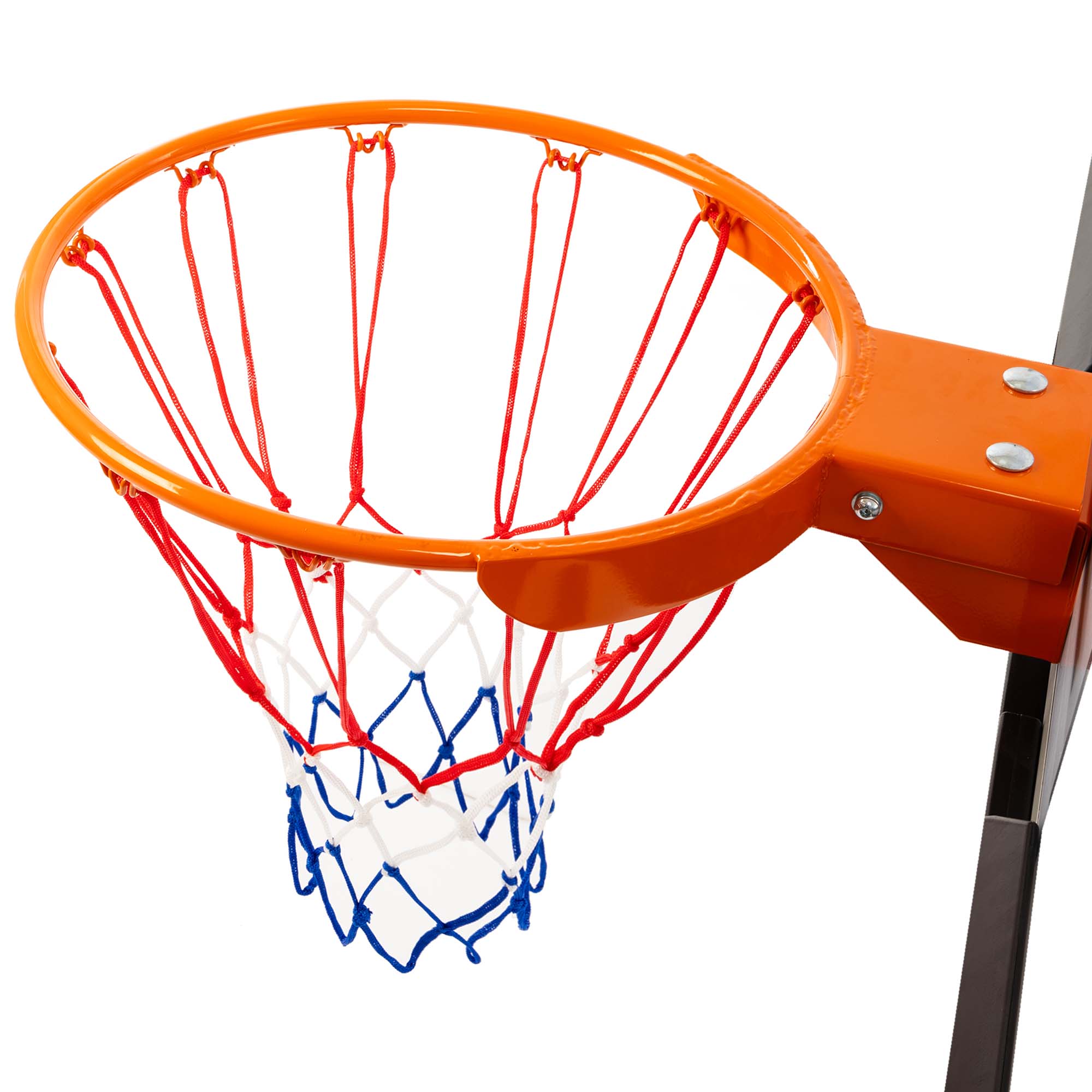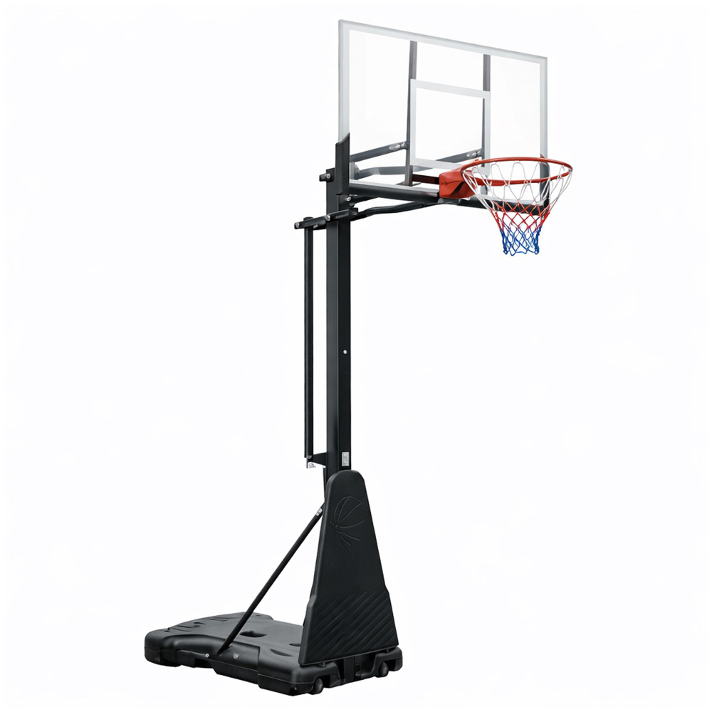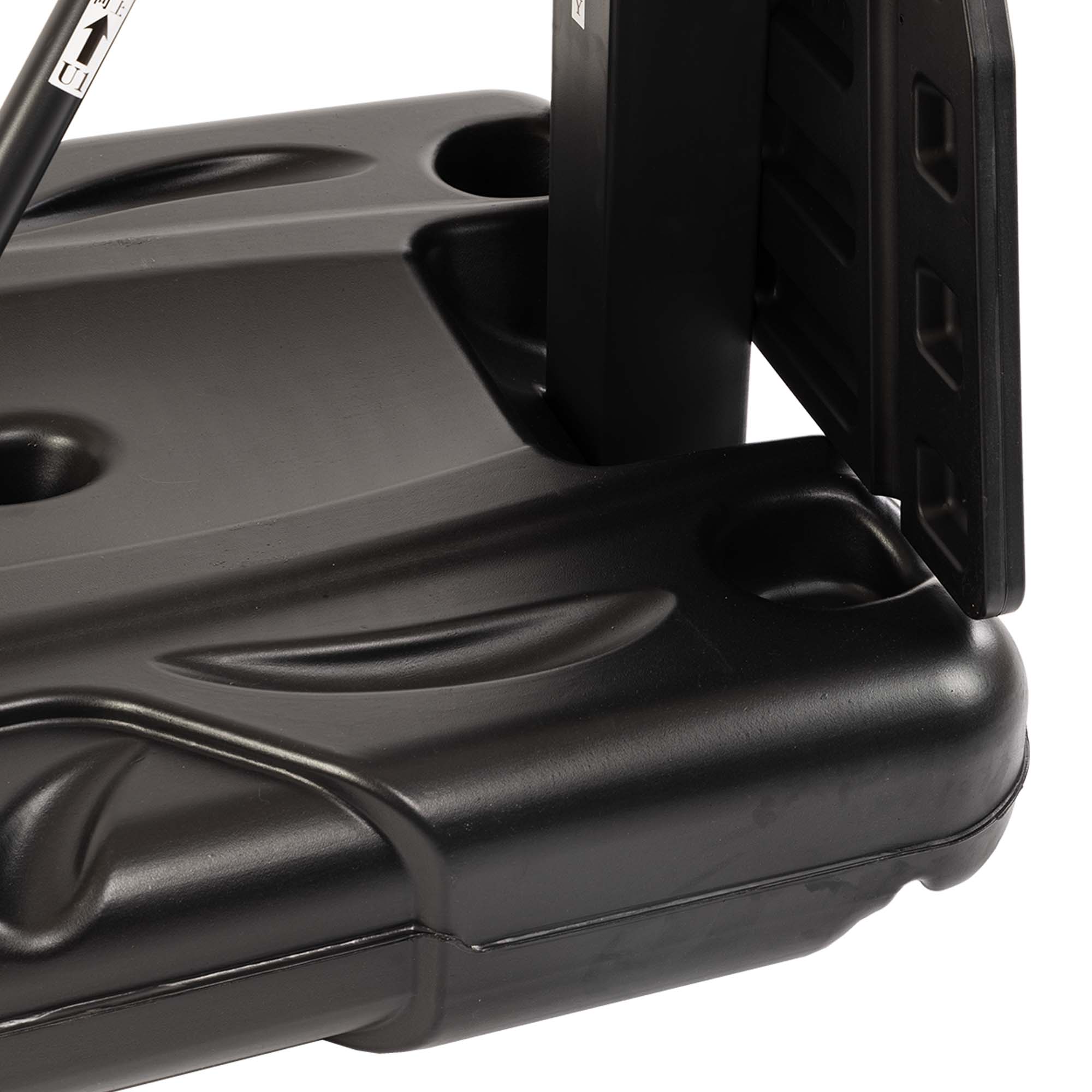 Мобільна стійка для баскетболу SP-Sport ADULT S023 - надзвичайно зручне рішення для дорослих чоловічих і жіночих команд. Сама стійка виготовлена з металу, а основа виконана з формованого поліетилену і має можливість обваження для більшої стабільності. Вага мобільної стійки становить 64 кг. Щит виготовлений з полікарбонату, який є ударостійким і стійким до пошкоджень. Стійка регулюється по висоті в діапазоні від 255 до 325 см. Вона виготовлена з металу. Кільце має стандартний діаметр 45 см, виконано з металу і укомплектовано нейлоновою сіткою. Стійку можна встановити в приміщенні або на вулиці. Метал покритий фарбою і стійкий до корозії.