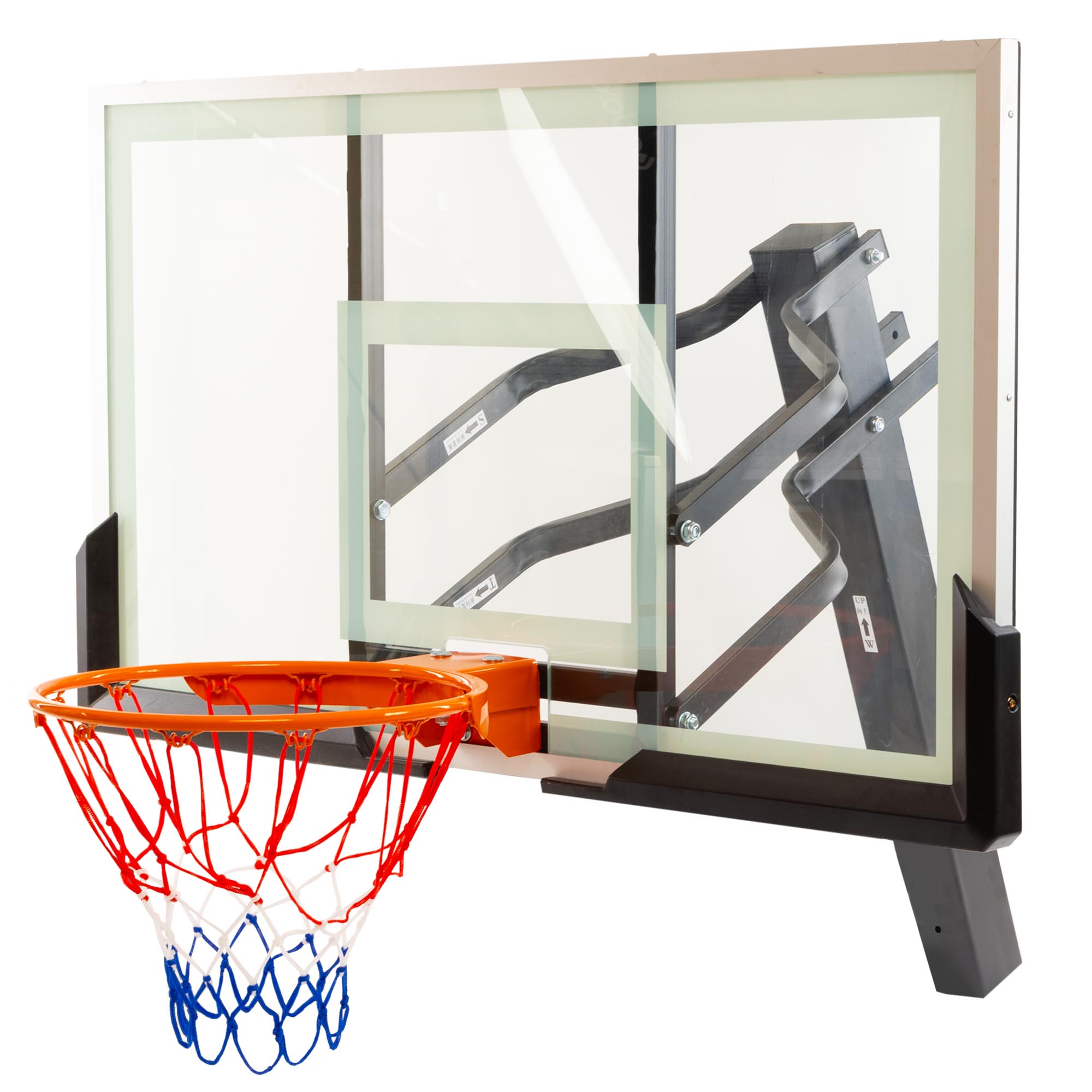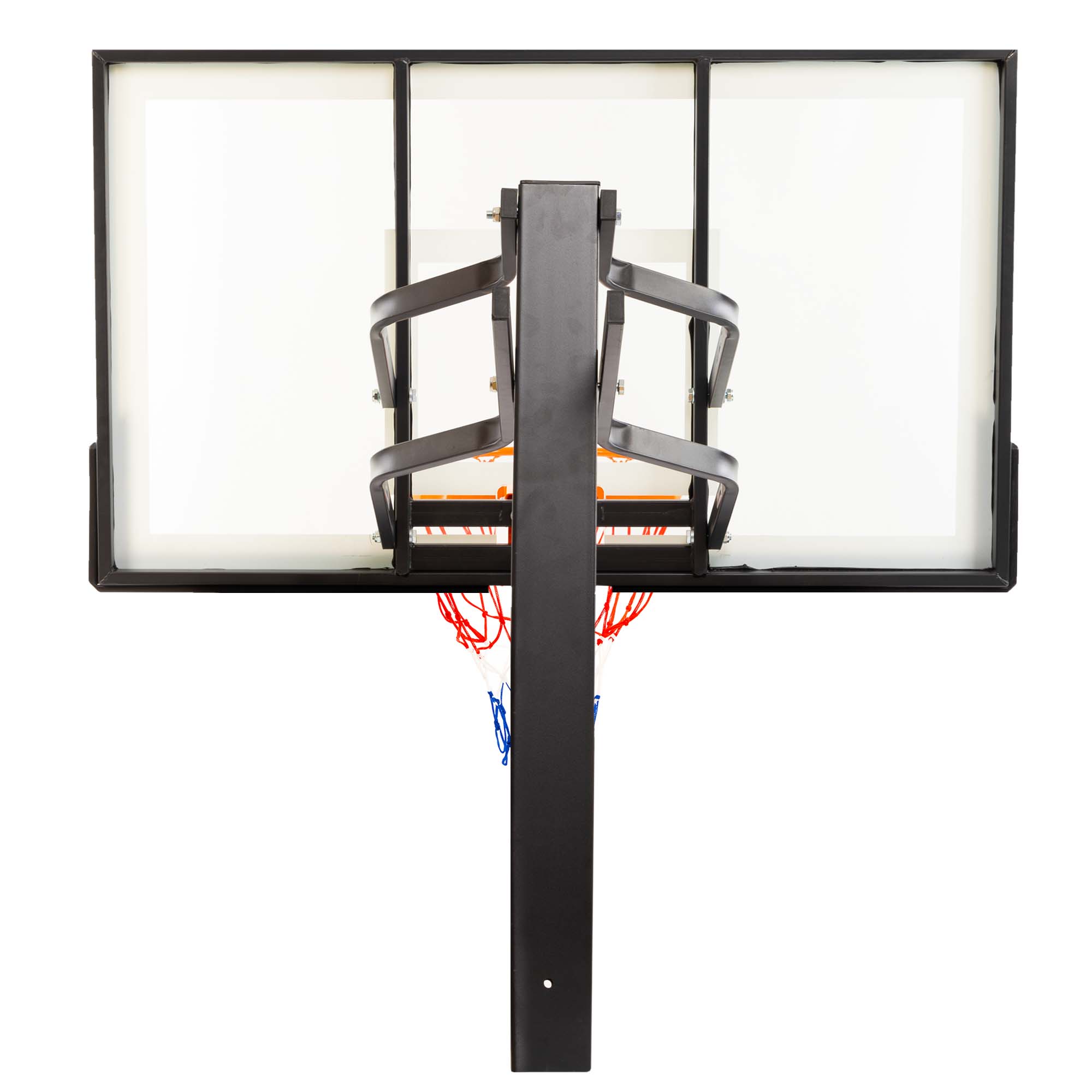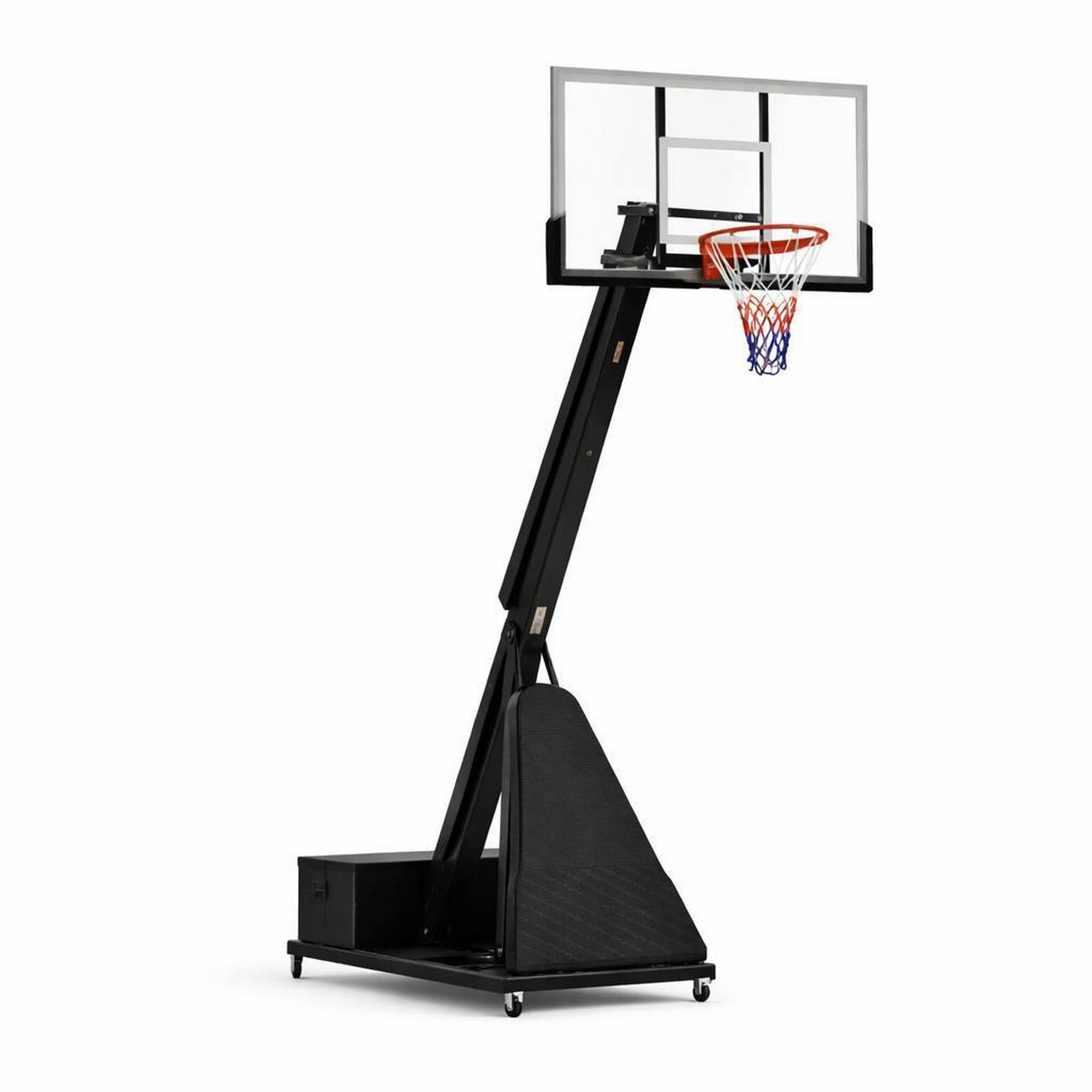 Встановити стійку з баскетбольним щитом можна в залі. Вона ідеально підійде для тренувань дорослих чоловічих і жіночих команд, оскільки має регульований розмір і може підлаштовуватися під зріст гравців. Загартоване скло, з якого виготовлений щит, робить відскок м'яча оптимальним. Діаметр кільця стандартний, має систему амортизації, яка захищає конструкцію від пошкоджень.