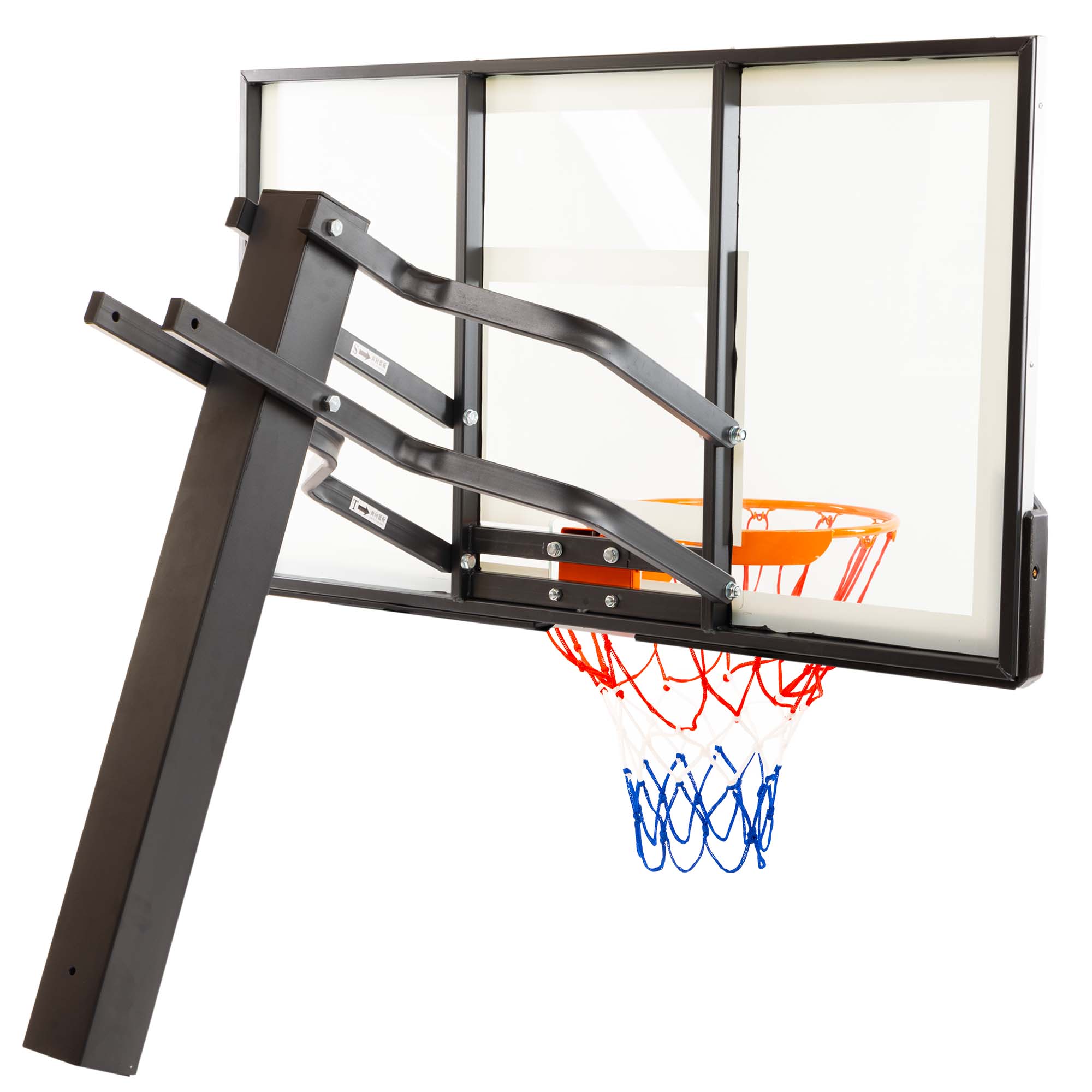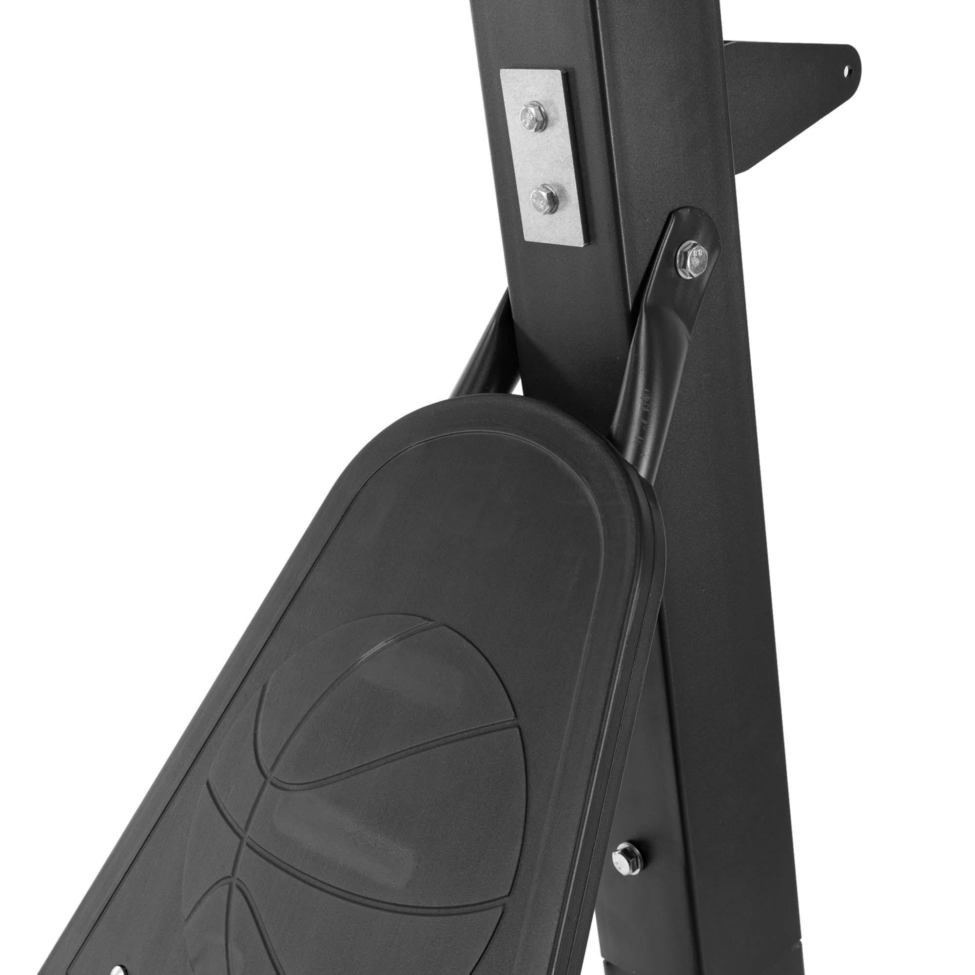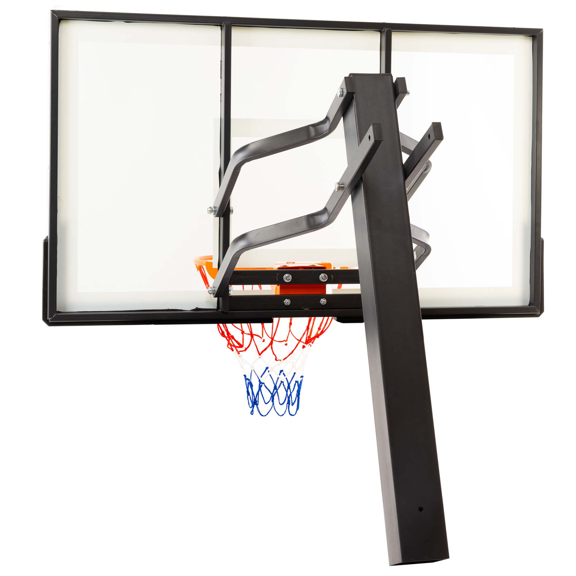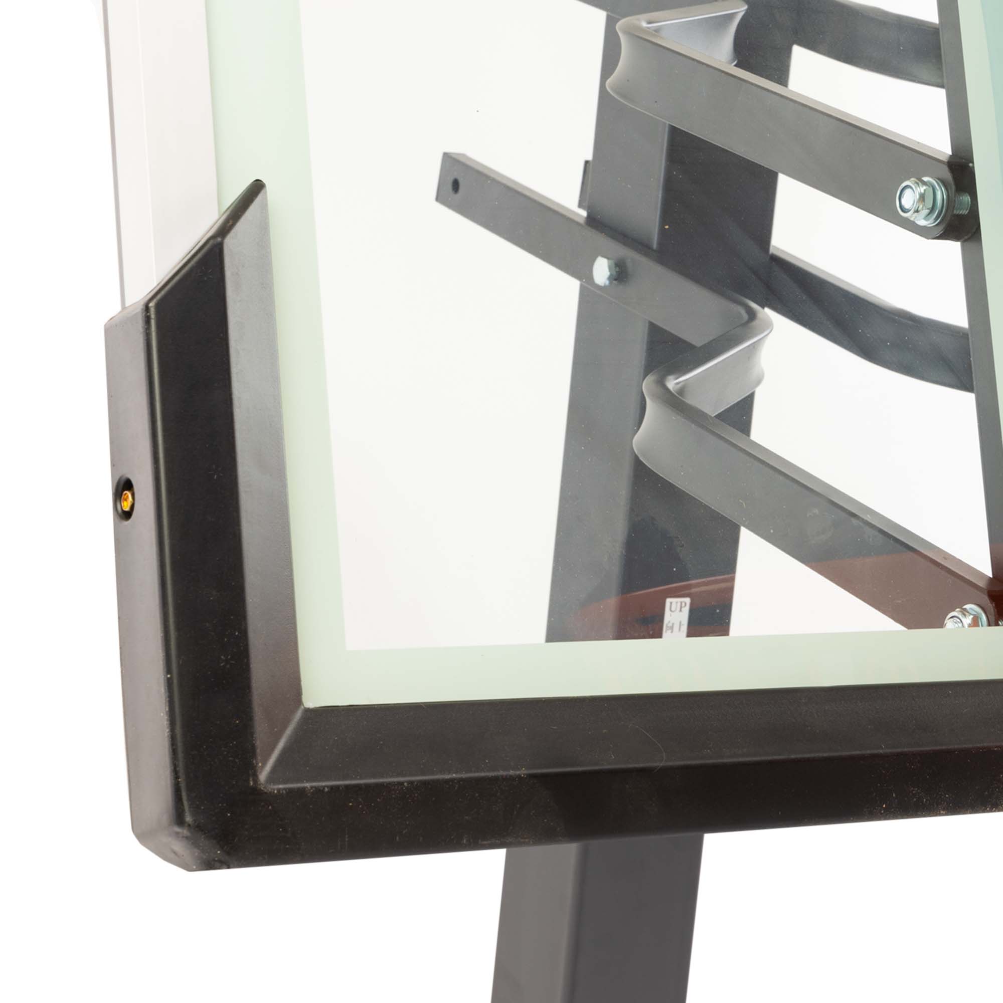 Встановити стійку з баскетбольним щитом можна в залі. Вона ідеально підійде для тренувань дорослих чоловічих і жіночих команд, оскільки має регульований розмір і може підлаштовуватися під зріст гравців. Загартоване скло, з якого виготовлений щит, робить відскок м'яча оптимальним. Діаметр кільця стандартний, має систему амортизації, яка захищає конструкцію від пошкоджень.