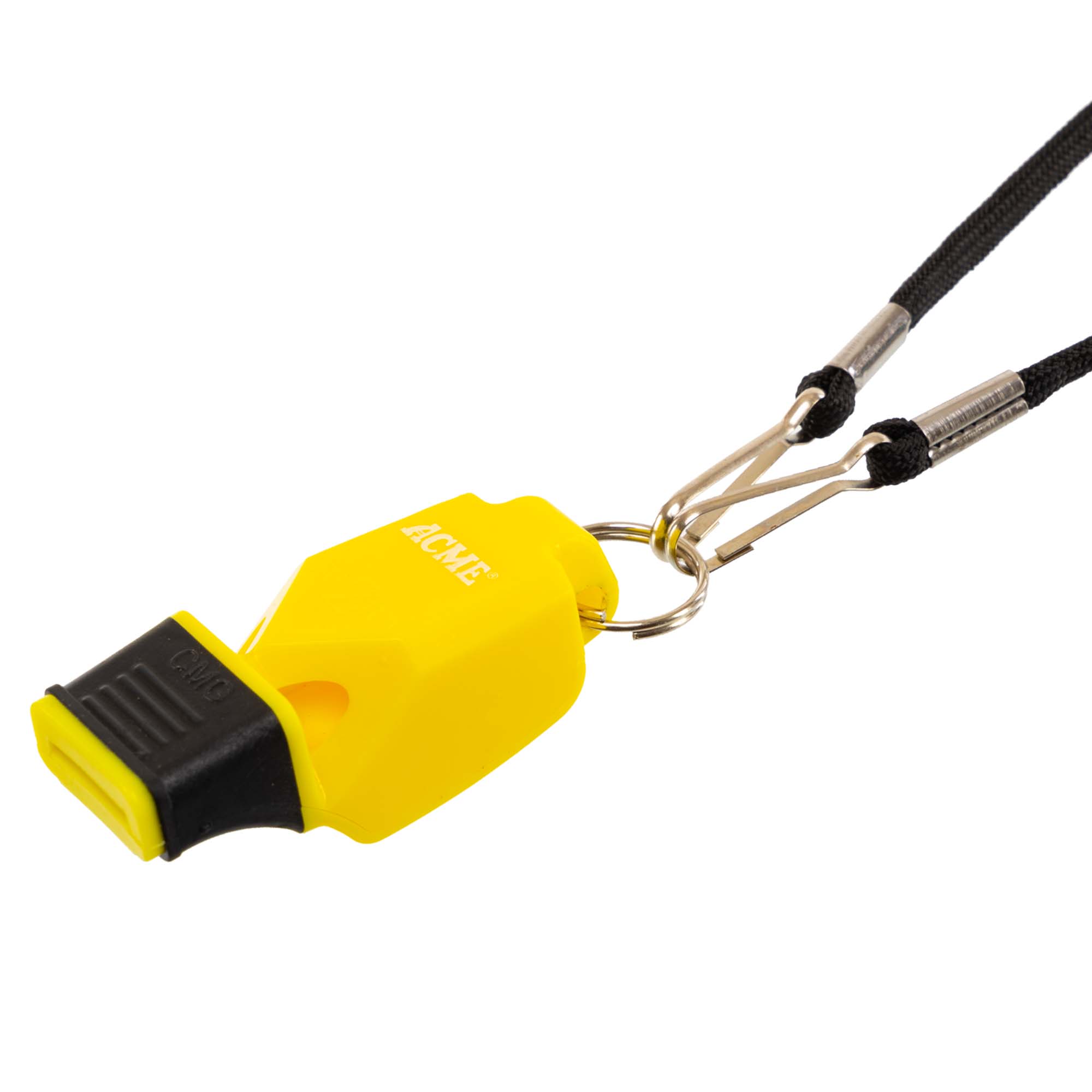 Суддівський спортивний свисток A0032 ACME виготовлений з пластику і комплектується зручним шнурком, який дозволяє носити його на шиї. Також в комплект постачання входять змінний загубник і пластиковий футляр для зберігання. Свисток дозволяє швидко подати потужний сигнал спортсменам на змаганнях або під час тренування. Потужність сигналу становить 130 дБ. Свисток має компактну форму і кріпиться до шнурка за допомогою металевого карабіна. Карабін теж входить в комплект постачання.