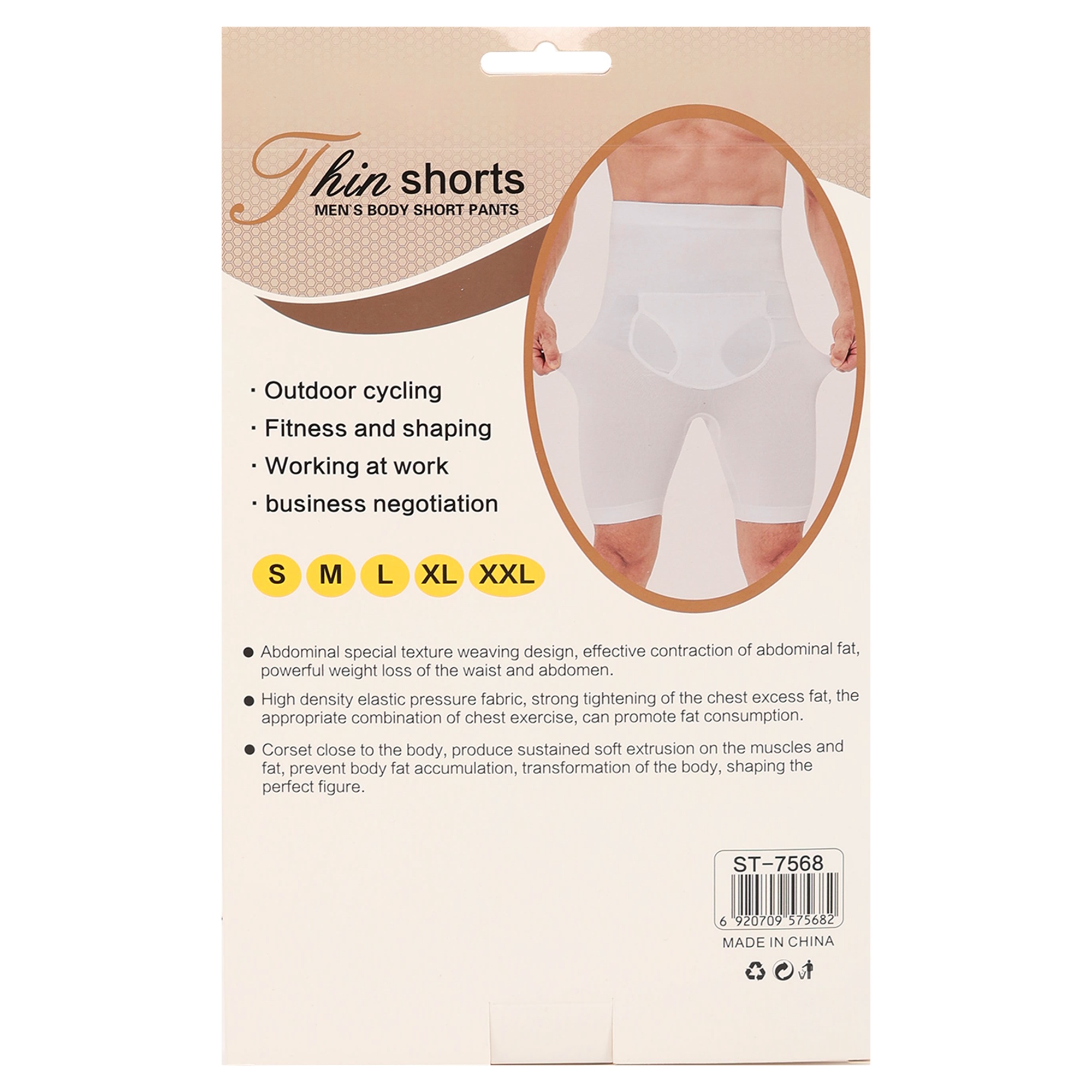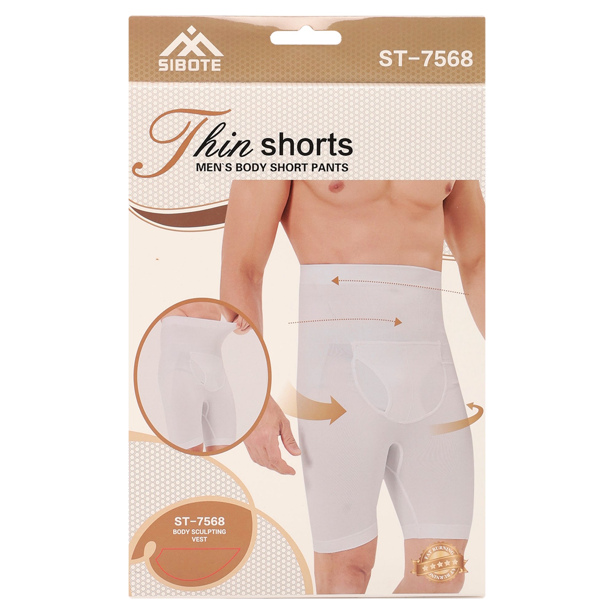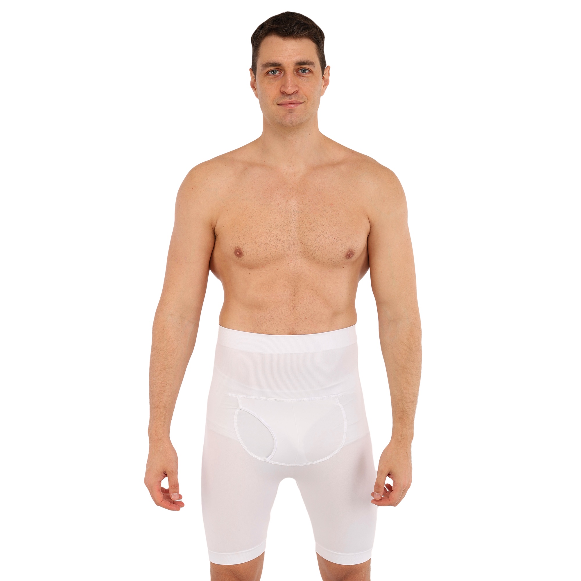 Шорти, що коригують чоловічі, що стягують з високою талією і кишенею для захисної черепашки SIBOTE ST-7568 S-2XL білий Код ST-7568