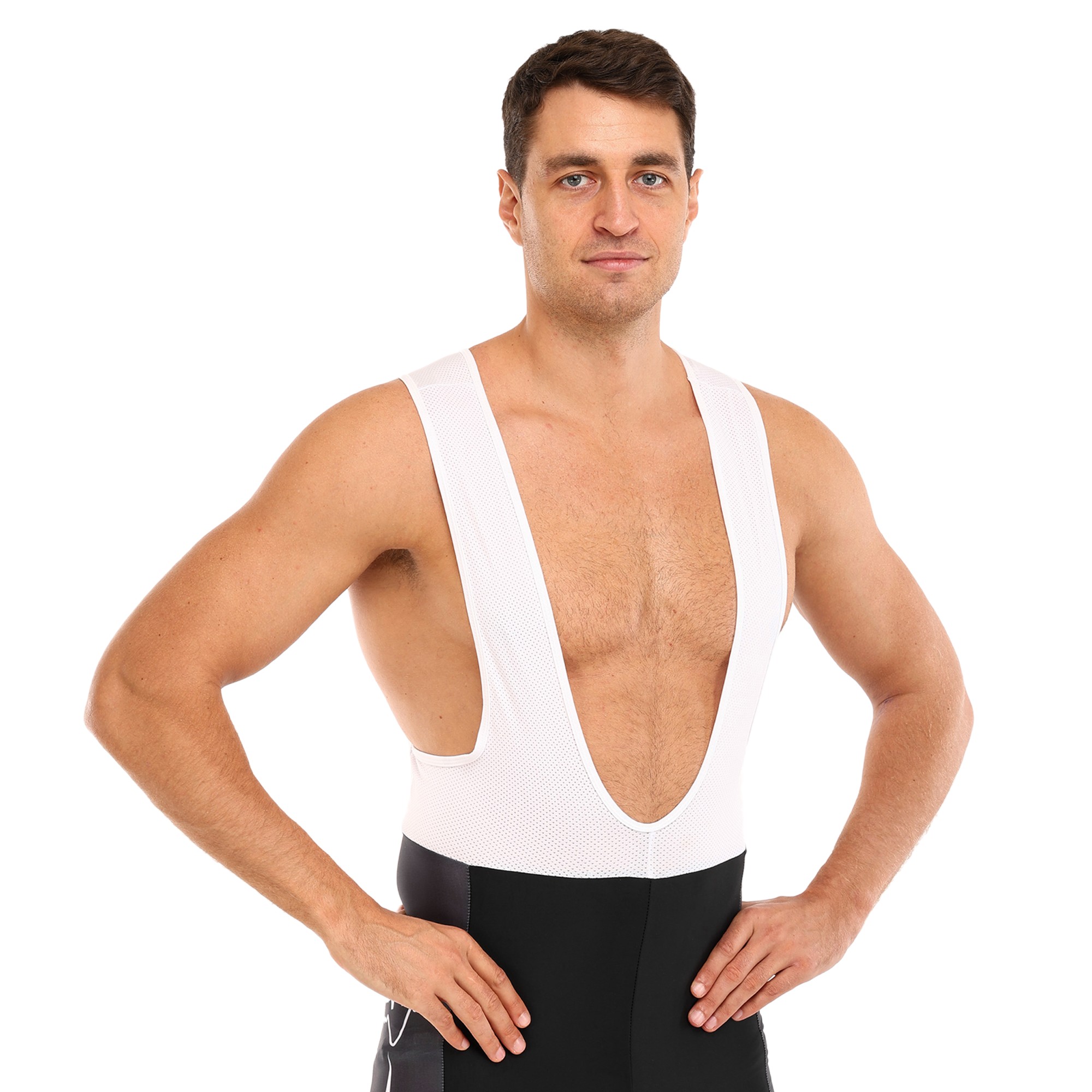Шорти з лямками мають анатомічний крій, що забезпечує щільне прилягання до тіла без сковування рухів. Лямки виконані з еластичного матеріалу, що дозволяє їм надійно фіксуватись на плечах, не створюючи дискомфорту. Внутрішня частина шорт оснащена ергономічним памперсом, який знижує тиск на контактні зони та запобігає натиранню.