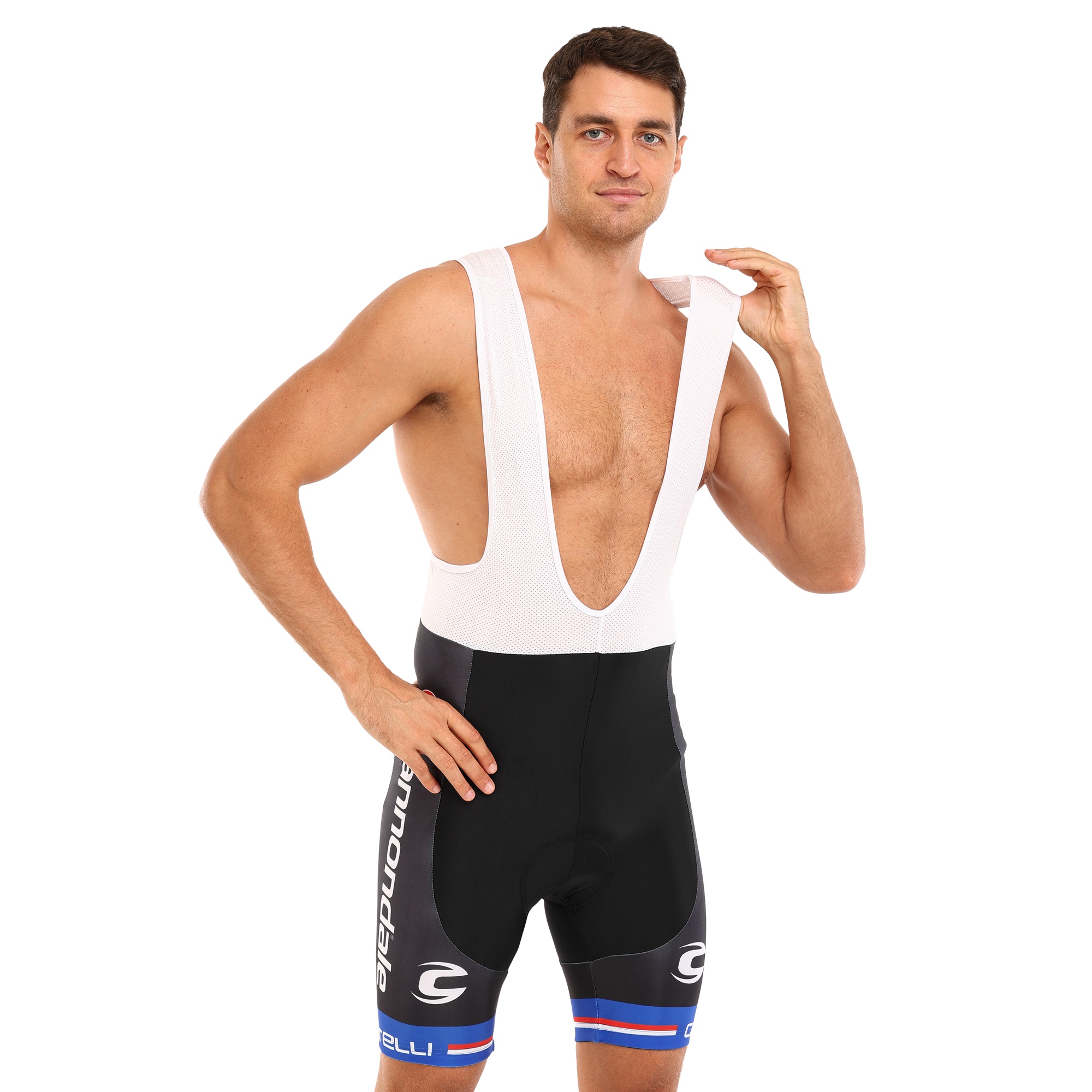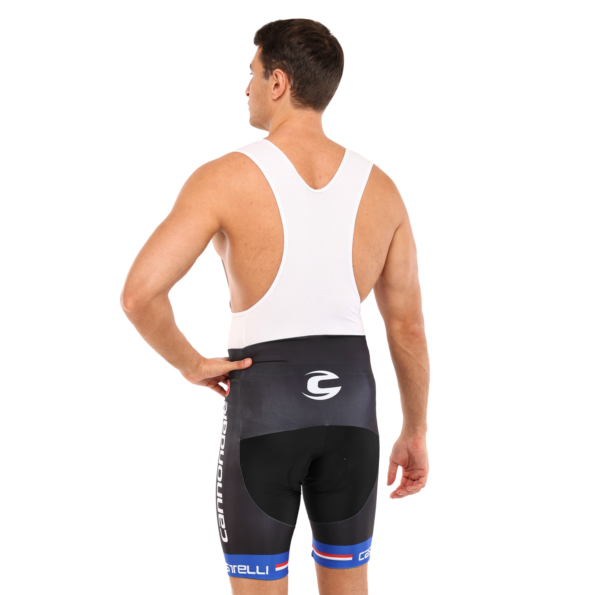 Шорти з лямками виконані з еластичного матеріалу, що щільно облягає тіло, не сковуючи рухів. Лямки забезпечують надійну фіксацію шортів на місці, запобігаючи їх сповзанню та перекручуванню під час їзди. Ергономічний крій шорт сприяє покращенню аеродинаміки та комфорту, знижуючи втому м'язів при тривалих поїздках. Спеціальний анатомічний памперс в області сидіння мінімізує тертя та надає додаткове пом'якшення.