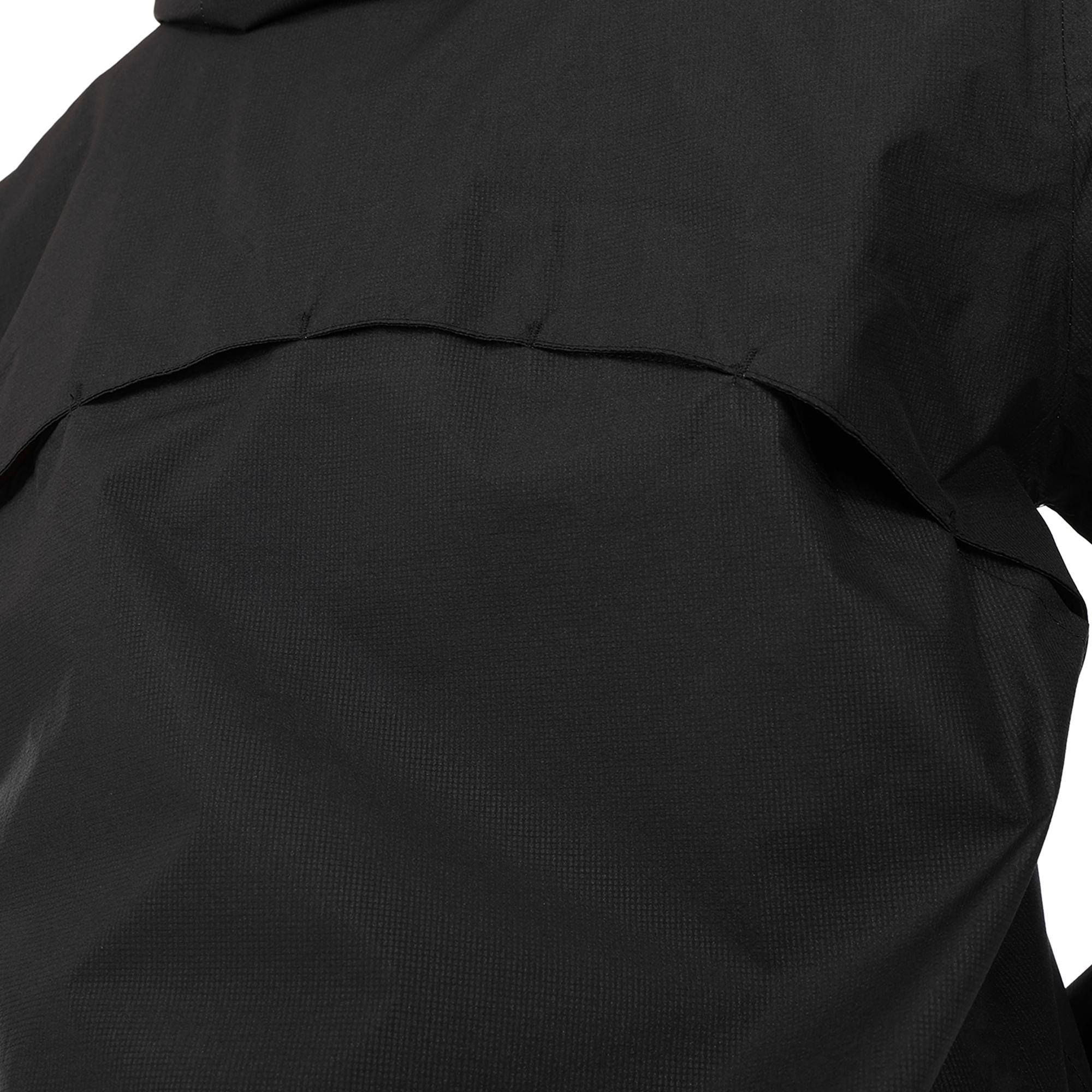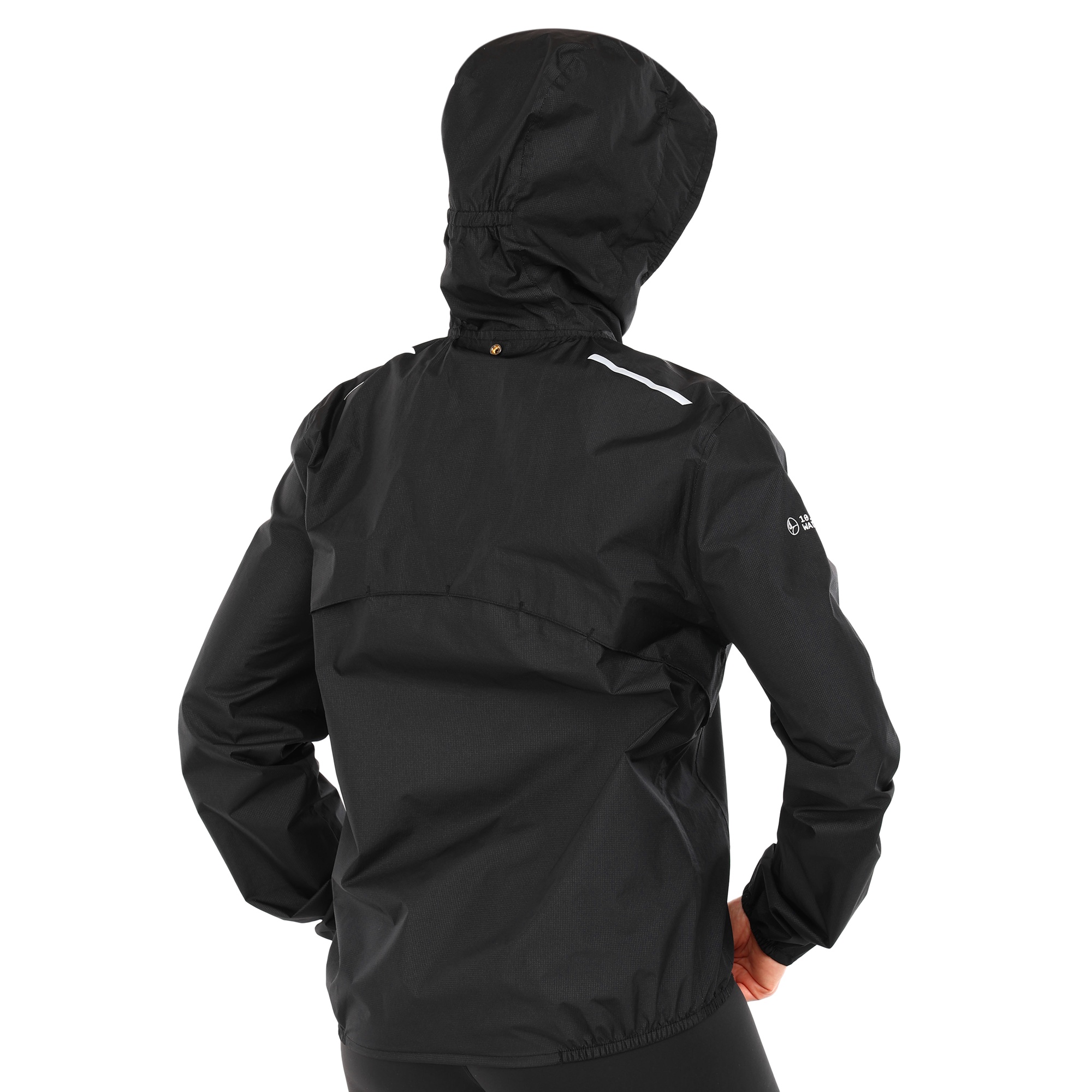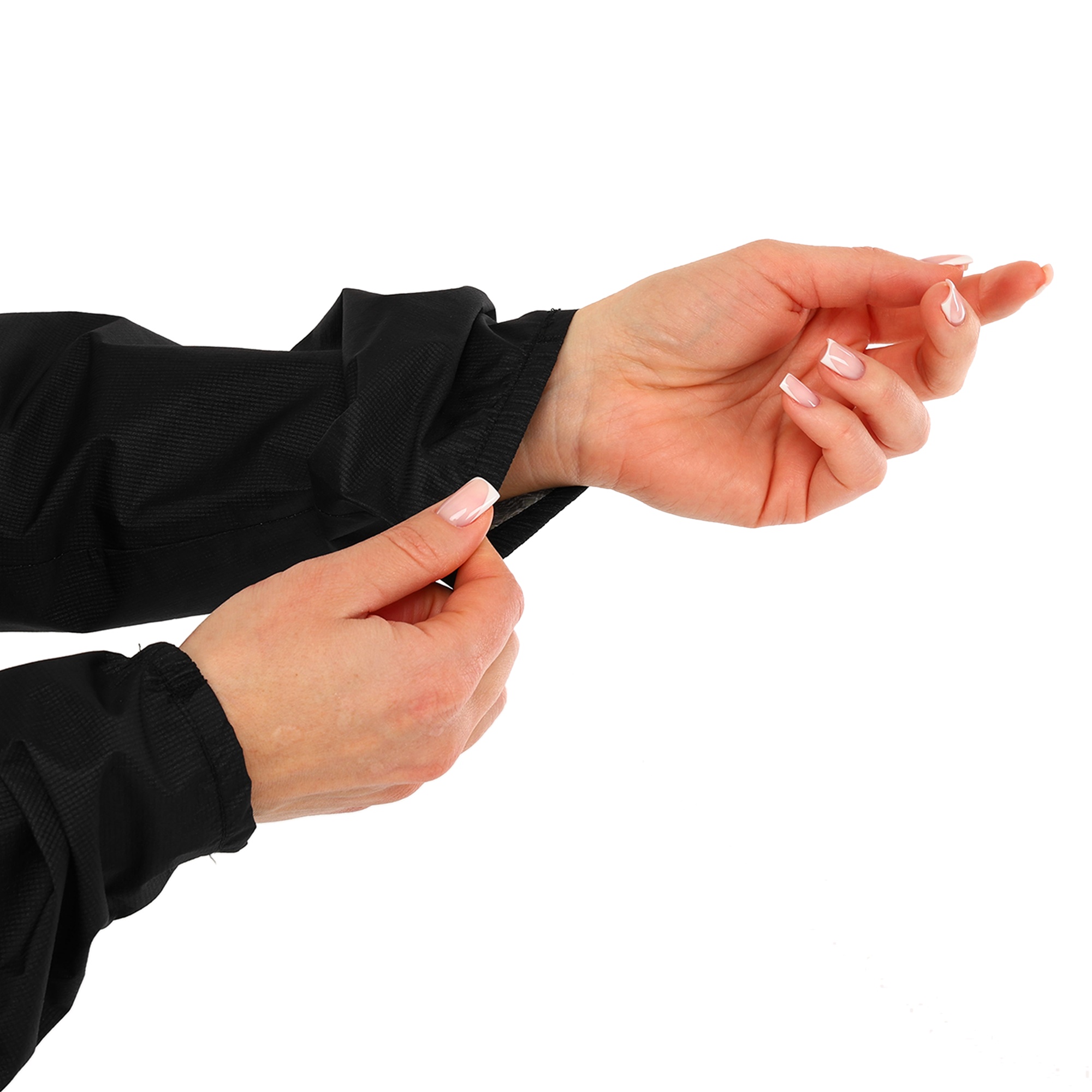 Куртка застібається на блискавку зі зручним язичком і захисною вставкою. Високоякісна фурнітура і спеціальний клапан перешкоджають потраплянню всередину води. Зручну посадку забезпечують еластичні манжети та пояс, що захищають спортсменку від вітру. Спеціальний еластичний капюшон з жорстким козирком добре адаптується до форми голови та забезпечує додатковий захист.