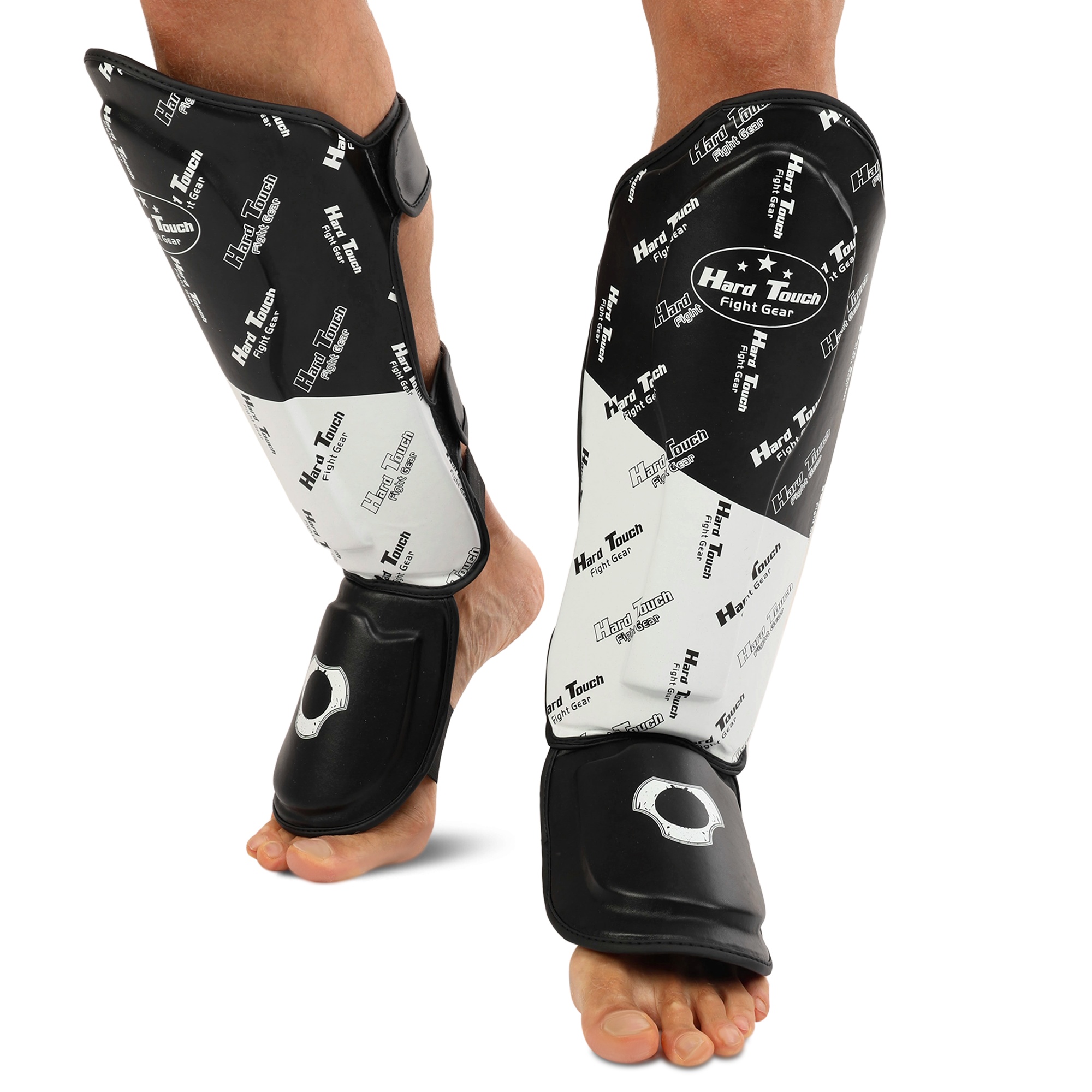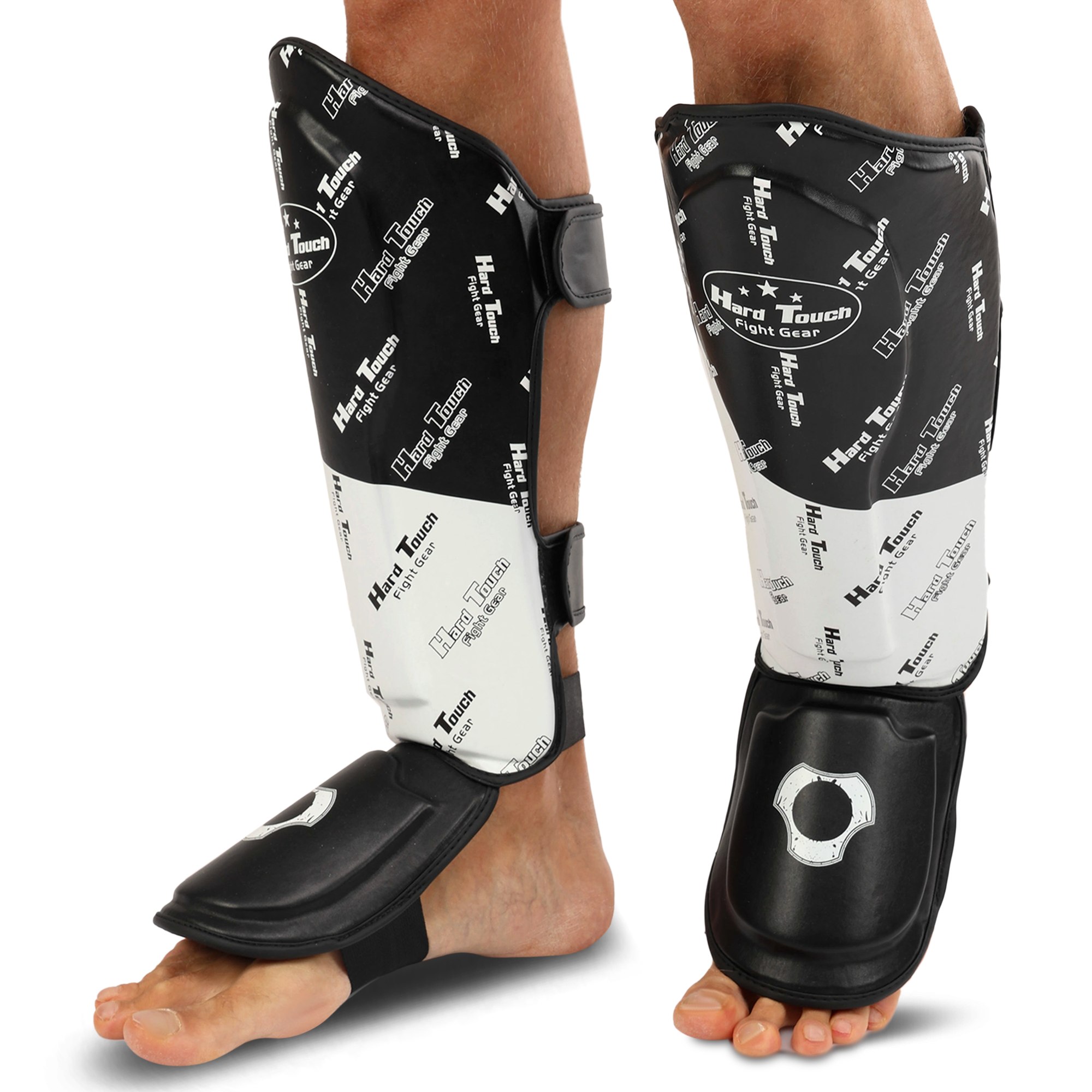 HARD TOUCH BO-7379 - захист гомілки і стопи, виконаний з поліуретану і містить пінний сформований наповнювач, який забезпечує захист від травм. Саме завдяки наповнювачу вдається гасити силу ударів і уникати серйозних пошкоджень в області стопи і гомілки. При цьому спортсмен отримує максимальну мобільність в суглобах і може виконувати ті ж рухи, що і без екіпіровки. Екіпірування має регульований розмір. На його тильній стороні розташовані липучки, які дозволяють надійно зафіксувати його на ногах. Завдяки зручній посадці екіпірування не перекручується і не сповзає під час активних рухів ногами. Поліуретан стійкий до стирання, а посилені шви забезпечують тривалий термін служби виробу.