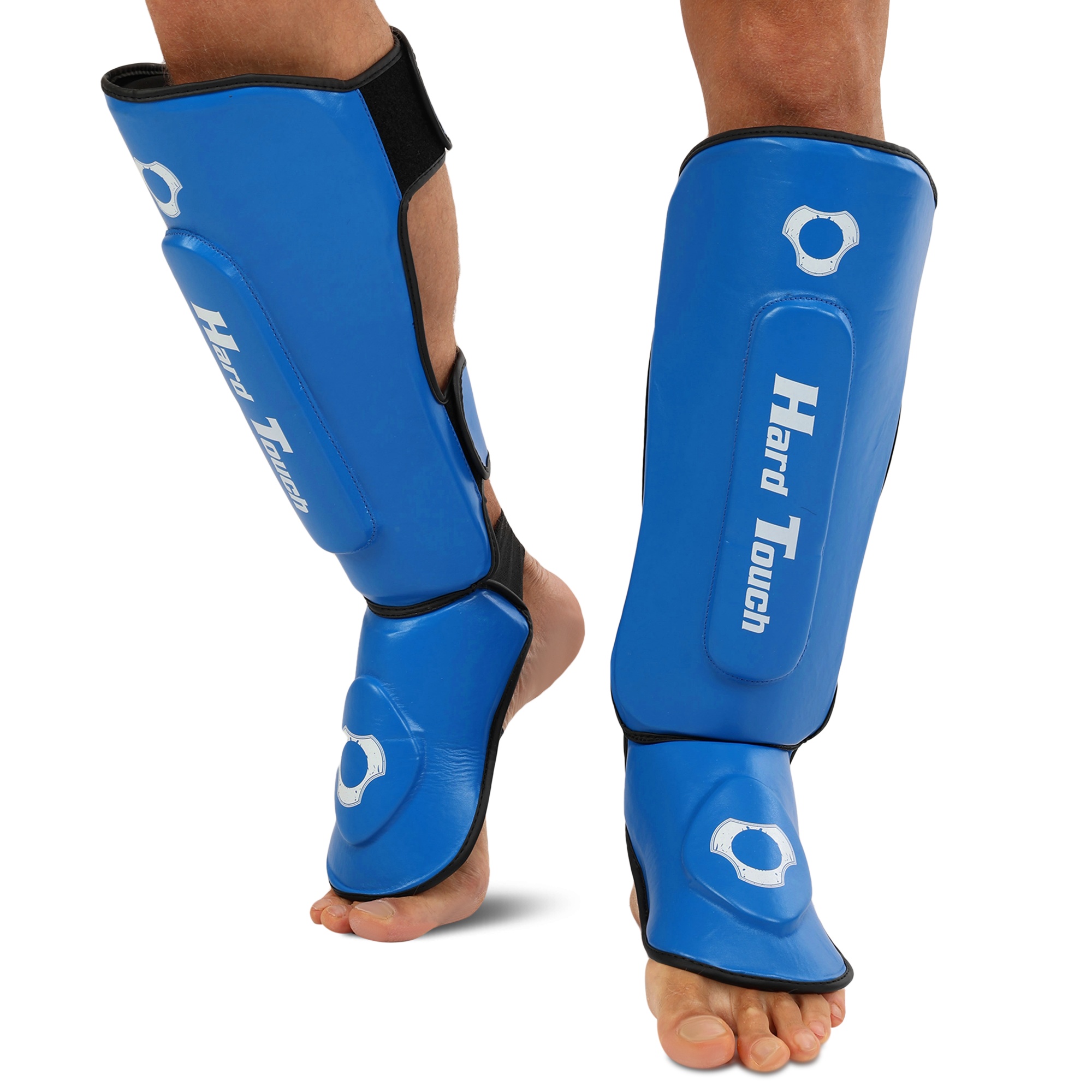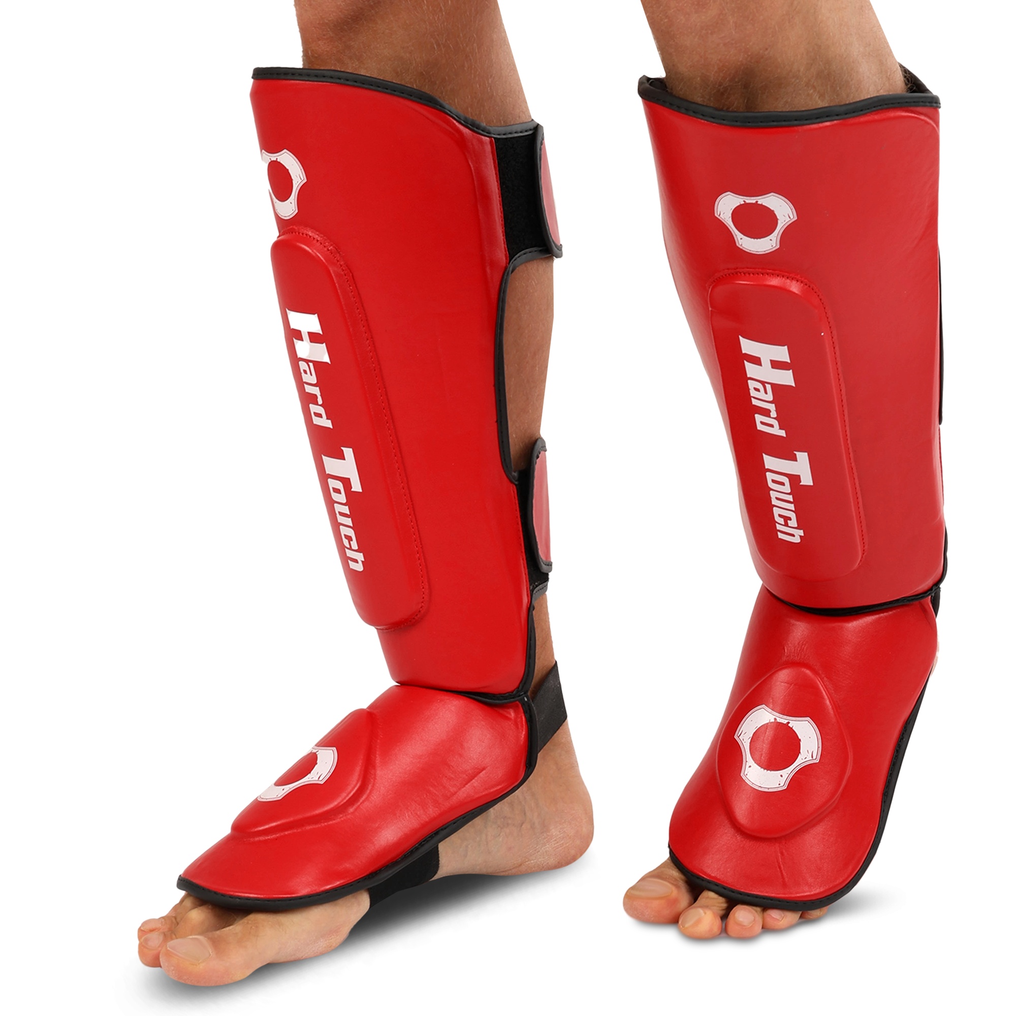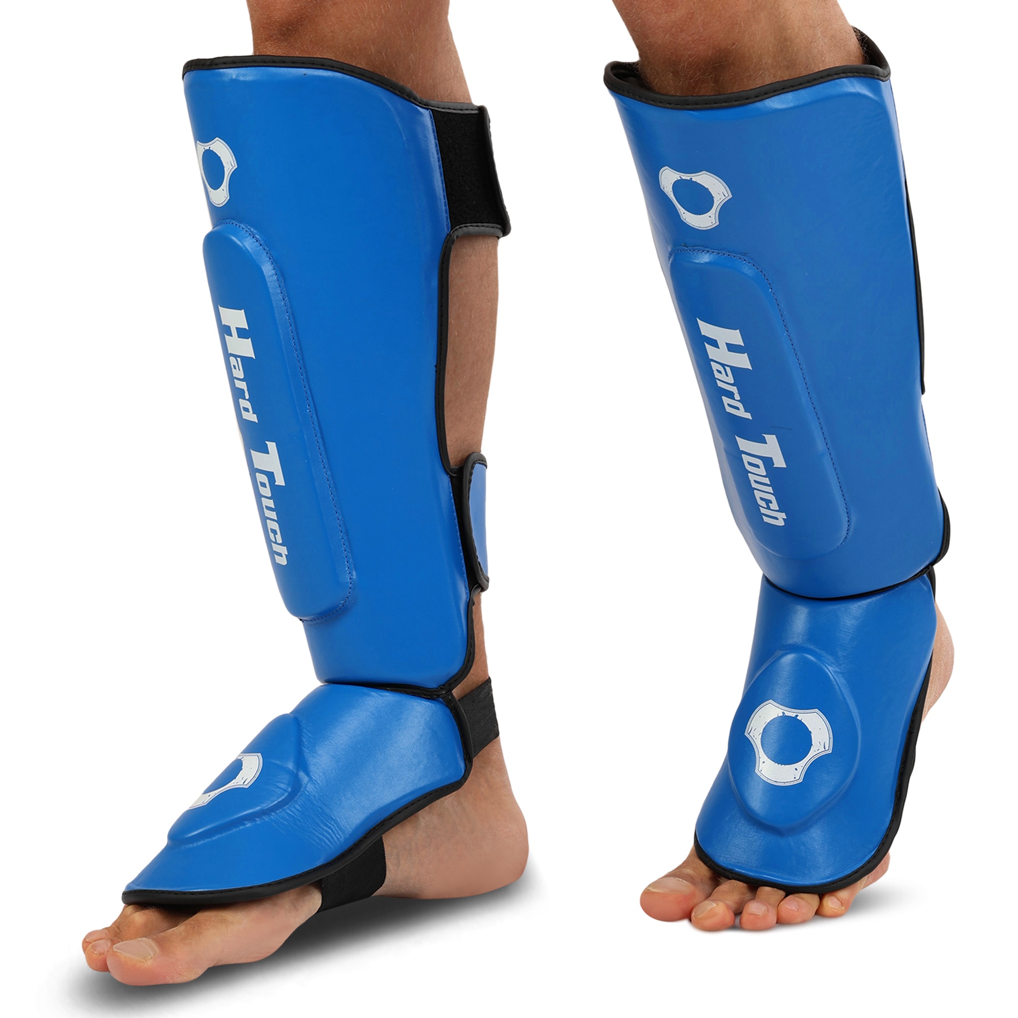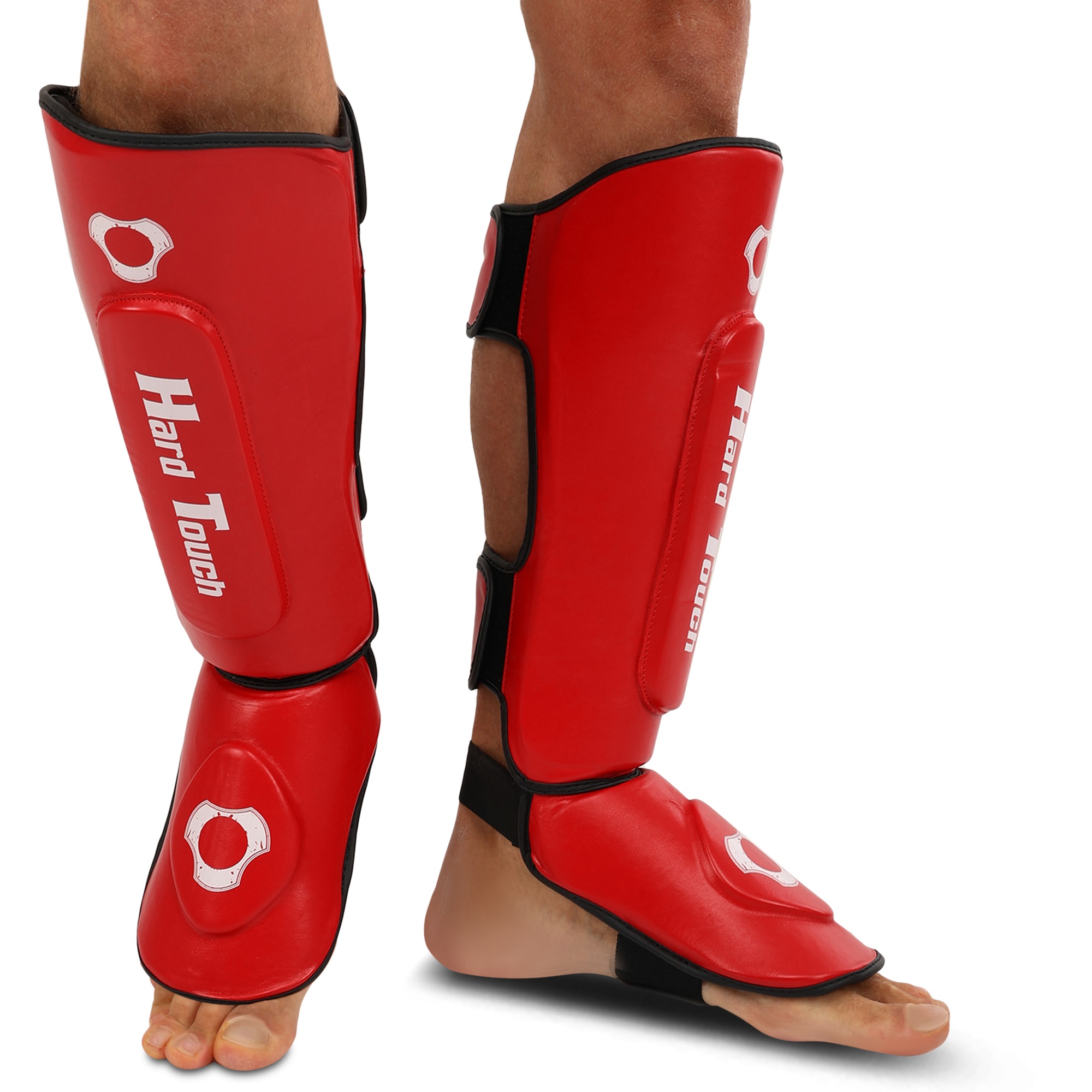 HARD TOUCH BO-7380 - найкраще екіпірування для занять муай-тай, ММА та кікбоксингом. Екіпірування надійно захищає гомілку та стопу. Воно являє собою пару накладок, які мають ергономічну форму та виготовлені з легких матеріалів. В якості матеріалу верху застосовується поліуретан, а під ним ховається сформований пінний наповнювач, який необхідний для того, щоб екіпірування успішно гасило найсильніші удари. На тильній стороні екіпірування розташовується пара липучок і пара еластичних гумок. Гумки фіксують частину екіпіровки, яка прилягає до стопи, а липучки - до гомілки. Екіпіровка має зручну посадку, не зміщується і не сповзає під час виконання ударів ногами. Спортсмен не втрачає рухливість і може виконувати будь-які рухи.