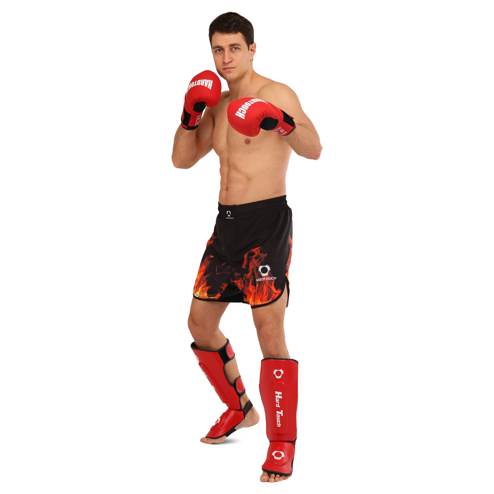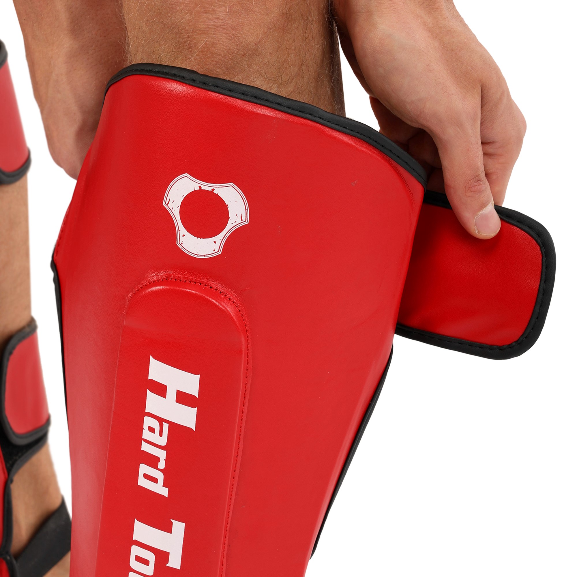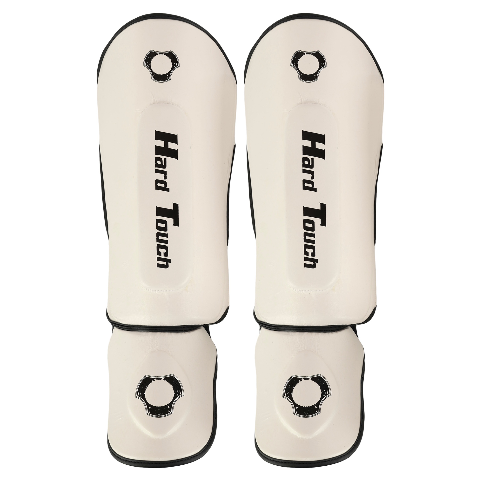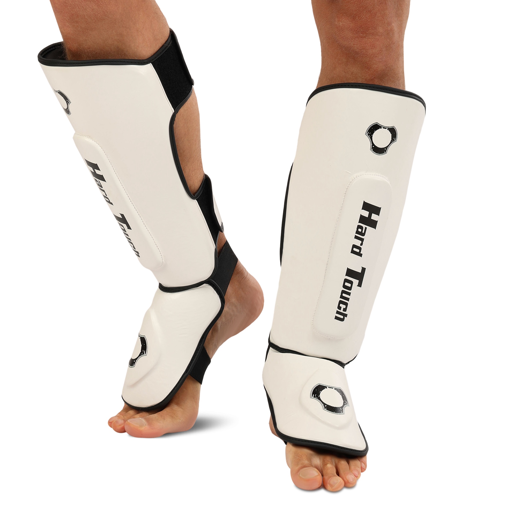 HARD TOUCH BO-7380 - найкраще екіпірування для занять муай-тай, ММА та кікбоксингом. Екіпірування надійно захищає гомілку та стопу. Воно являє собою пару накладок, які мають ергономічну форму та виготовлені з легких матеріалів. В якості матеріалу верху застосовується поліуретан, а під ним ховається сформований пінний наповнювач, який необхідний для того, щоб екіпірування успішно гасило найсильніші удари. На тильній стороні екіпірування розташовується пара липучок і пара еластичних гумок. Гумки фіксують частину екіпіровки, яка прилягає до стопи, а липучки - до гомілки. Екіпіровка має зручну посадку, не зміщується і не сповзає під час виконання ударів ногами. Спортсмен не втрачає рухливість і може виконувати будь-які рухи.