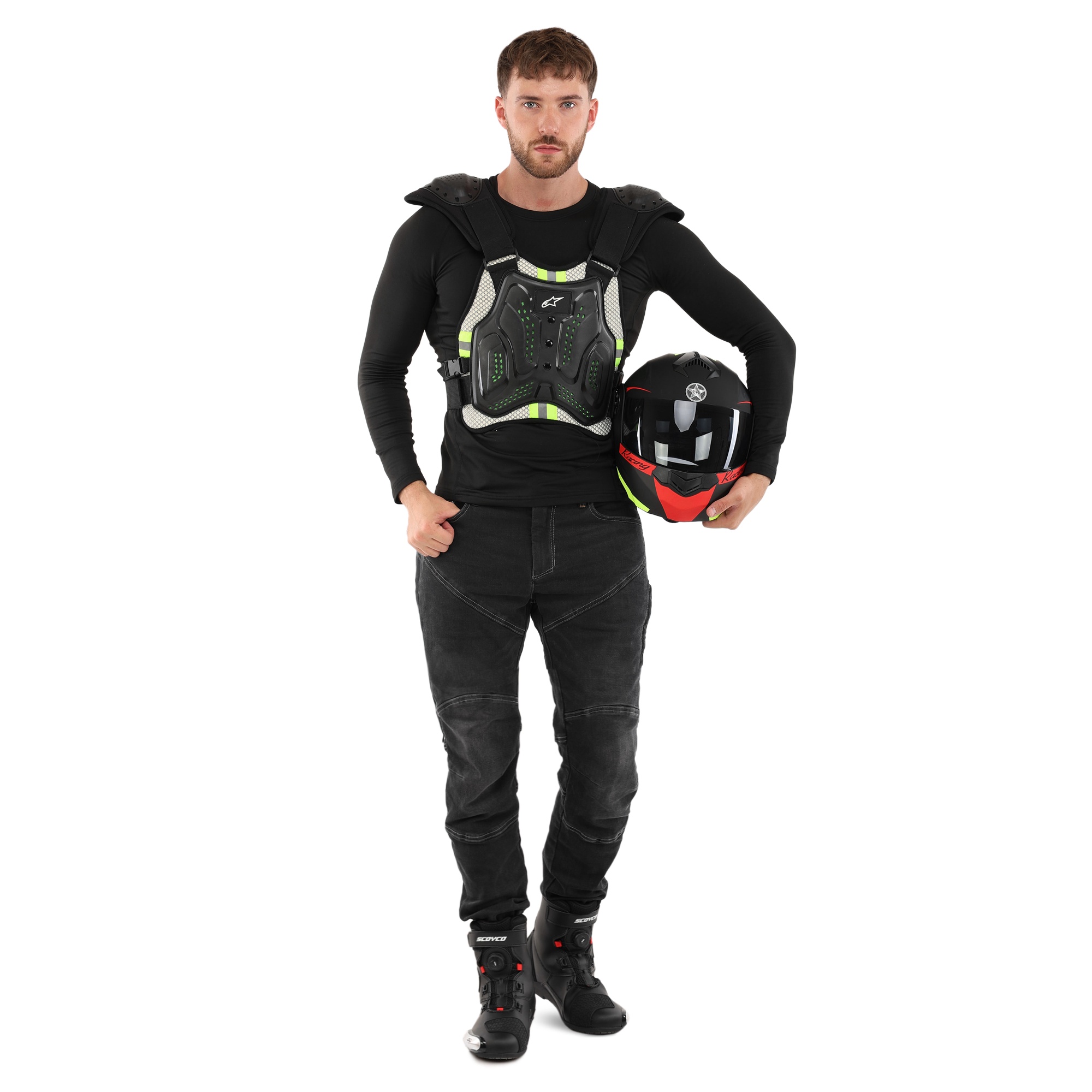 Alpinestar MS-5542 - це надійна та якісна моточерепаха з регульованими лямками, що дають змогу індивідуально налаштувати її посадку. Моточерепаха має зручний дизайн, який не сковує рухи, дає змогу легко сідати і злазити з мотоцикла, а також забезпечує надійний захист під час їзди на ньому. Як підкладка використовується поліестер, який забезпечує повітропроникність захисту, також підкладка амортизує удар у разі падіння.